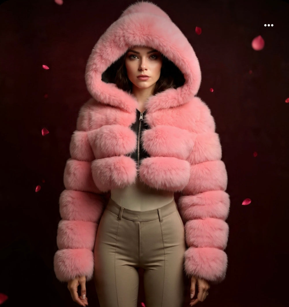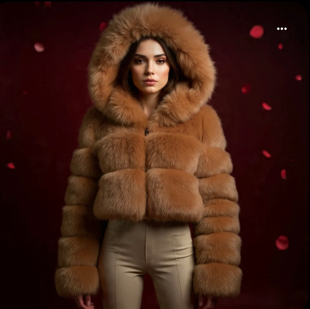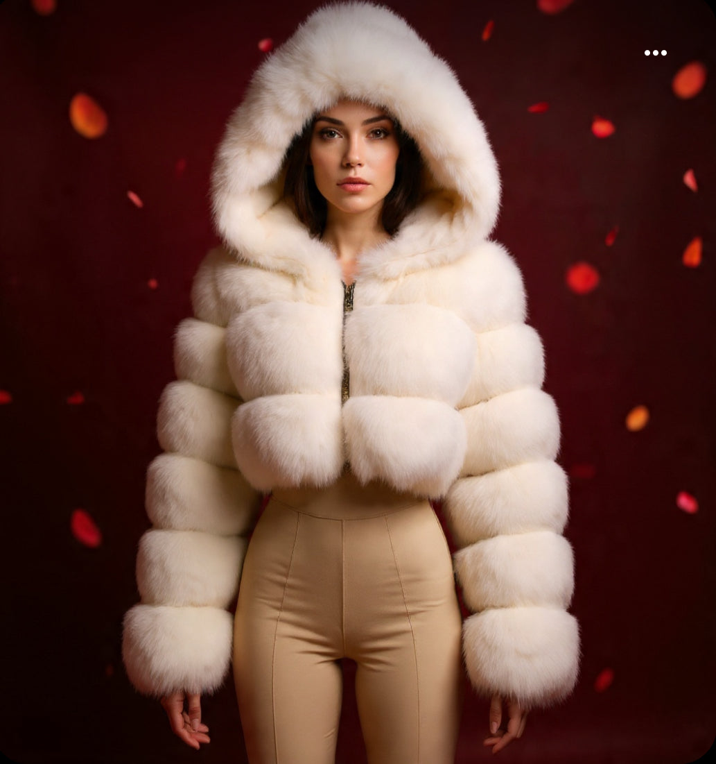 Embrace winter elegance with this luxe fur hood jacket that effortlessly blends comfort and style, perfect for any romantic occasion or night out.